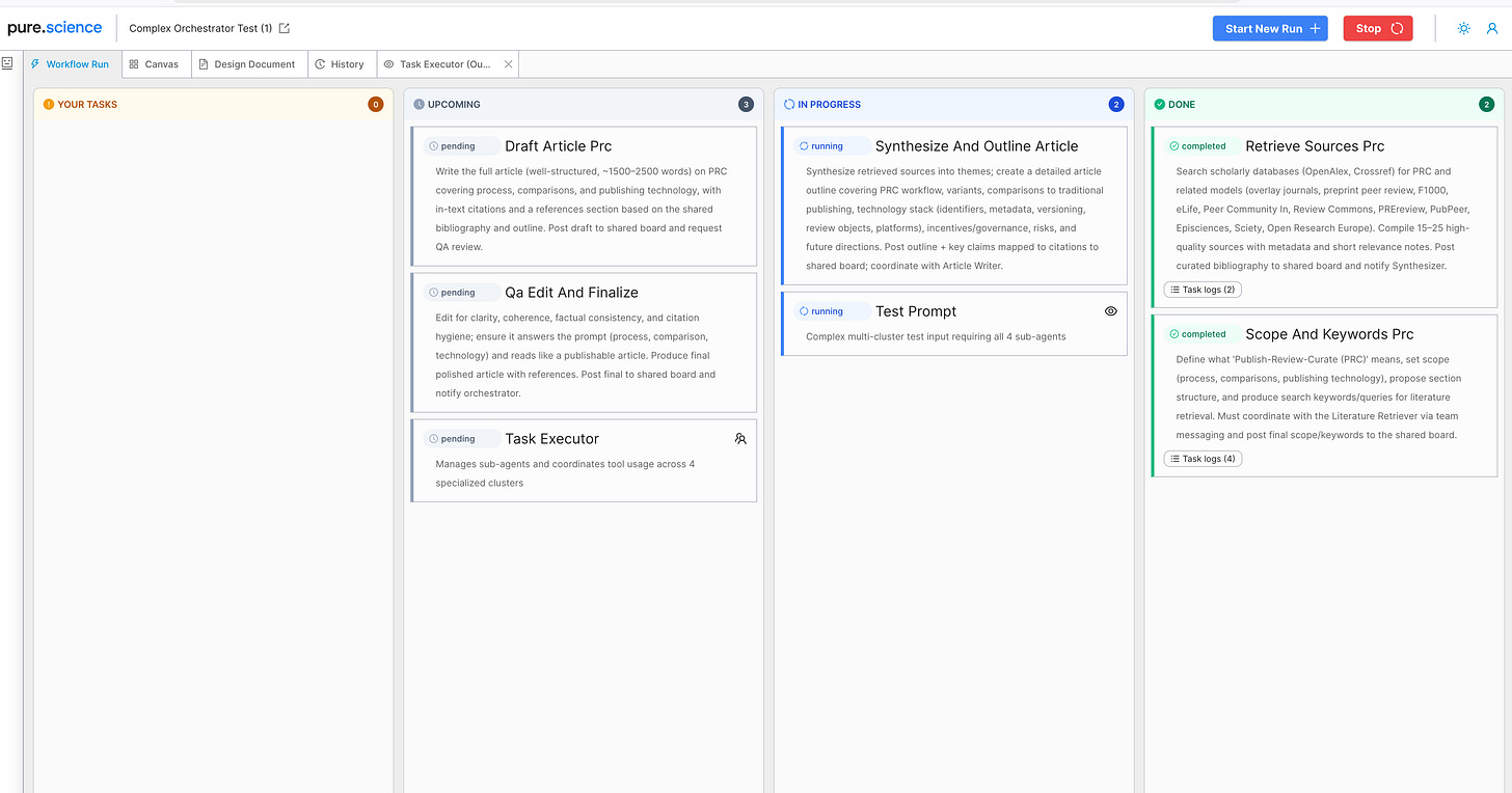 We built the same thing for agent teams in pure.science. Each team has a Kanban board — four stages, tasks moving through, full context on every card.